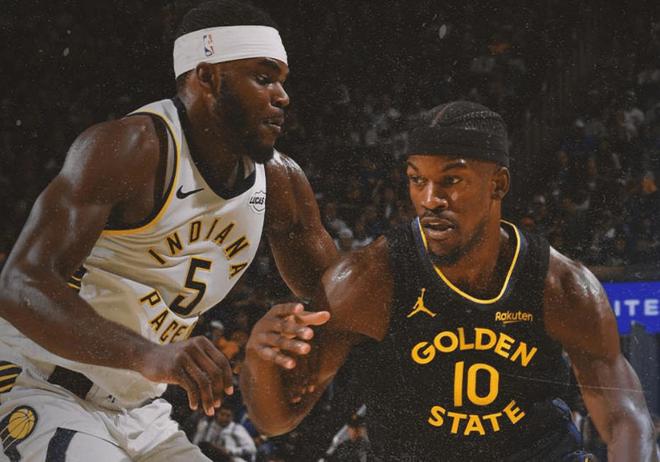 本场比赛,双方在首发阵容上面,勇士这边派出的是,库明加,波杰姆斯基,巴特勒,波斯特和追梦格林;步行者这边派出的是,内姆布哈德,沃克,以赛亚杰克逊,谢泼德和胡夫。首节比赛开始,勇士率先拿到球权,波斯特的三分开火一击命中,打进本场比赛首个进球;杰克逊突进油漆区强行抛投,也为步行者开张;追梦格林的追身三分球突施冷箭,巴特勒借助掩护,罚球线干拔跳投稳稳得手,波斯特底角埋伏,三分线外搭弓射箭百步穿杨。