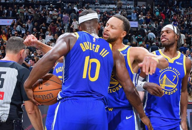 那要改变现状,或者想要破局,只能送走巴特勒。这中间甚至没有任何缓冲区,上赛季对勇士来说确实是好机会,但谁让库里季后赛受伤了呢?到了本赛季,巴特勒和库里的年龄和身体状态,不足以支撑漫长常规赛,结局早就注定了,踉踉跄跄进季后赛又如何?成雷霆或者掘金(火箭)的磨刀石?至于巴特勒市场交易行情极低的现状,那不是我们考虑的,谁让当初管理层给一份2年1.2亿顶薪合同呢?库里+巴特勒组合,确实该好聚好散,就此打住吧。